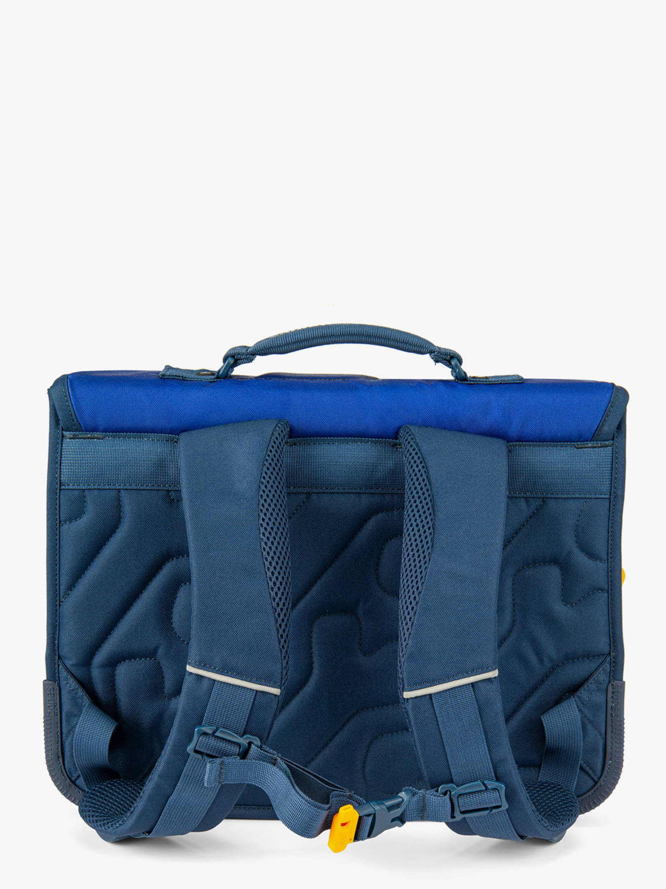 38 cm - 15 litres - 0.88 kg ~ Cartable garçon 38 cm de la marque Stones and Bones. Ce cartable enfant est idéal pour le CP, CE1 et CE2. Il se divise en deux compartiments et peut contenir les formats cahiers A4 et 24x32cm. On retrouve à l'intérieur une petite poche à fermeture zippée. Pratique, il dispose de deux poches à fermeture éclair sur le devant (sous et sur le rabat), idéales pour un petit goûter ou l'agenda. Petit plus, ce cartable dispose d'une étiquette nom. Le fond et les angles du cartable sont renforcés pour plus de solidité et des bandes réfléchissantes sont disposées autour du sac et sur les bretelles. Conçu pour le confort des enfants, le dos et les bretelles sont rembourrés.